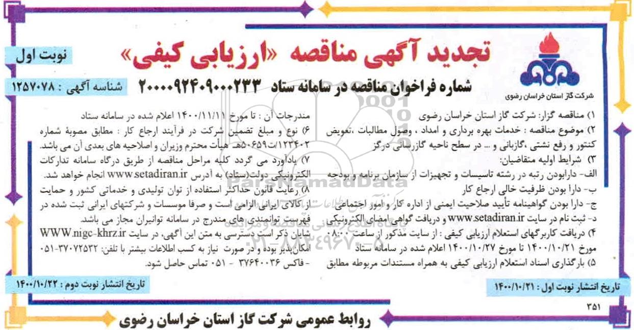 1- مناقصه گزار: شرکت گاز استان خراسان رضوی