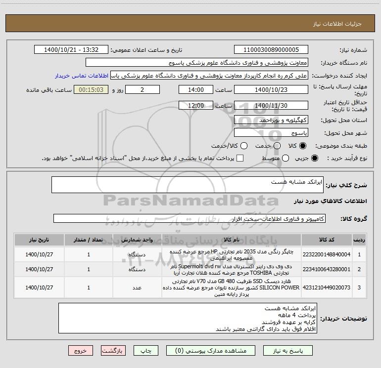 نام دستگاه خریدار:معاونت پژوهشی و فناوری دانشگاه علوم پزشکی یاسوج