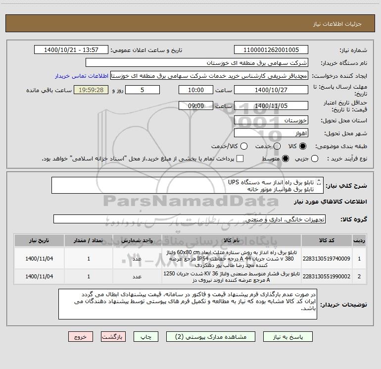 نام دستگاه خریدار:شرکت سهامی برق منطقه ای خوزستان