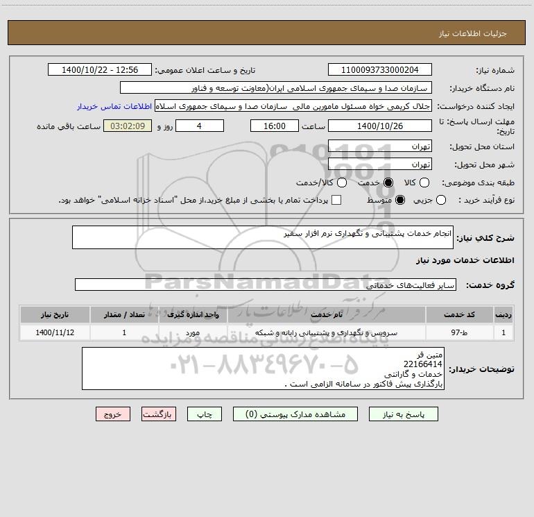 شرح کلی نیاز: انجام خدمات پشتیبانی و نگهداری نرم افزار سفیر