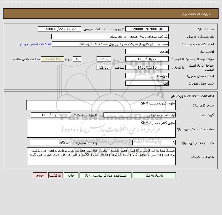 نام دستگاه خریدار:شرکت سهامی برق منطقه ای خوزستان