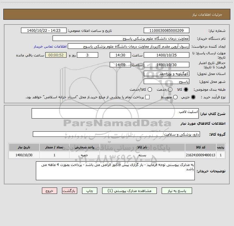 نام دستگاه خریدار:معاونت درمان دانشگاه علوم پزشکی یاسوج