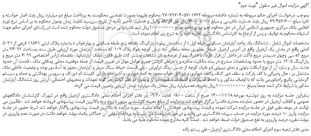 "آگهی مزایده اموال غیر منقول "نوبت دوم