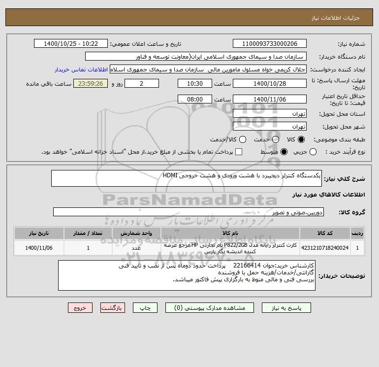 نام دستگاه خریدار: سازمان صدا و سیمای جمهوری اسلامی ایران(معاونت توسعه و فناور
