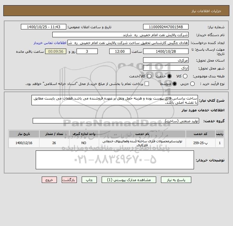 استعلام ساخت براساس فایل پیوست بوده و هزینه حمل ونقل بر عهده فروشنده می باشد.قطعات می بایست مطابق با نقشه اصلی باشد., استعلام ساخت براساس فایل پیوست بوده و هزینه حمل ونقل بر عهده فروشنده می باشد.قطعات می بایست مطابق با نقشه اصلی باشد.