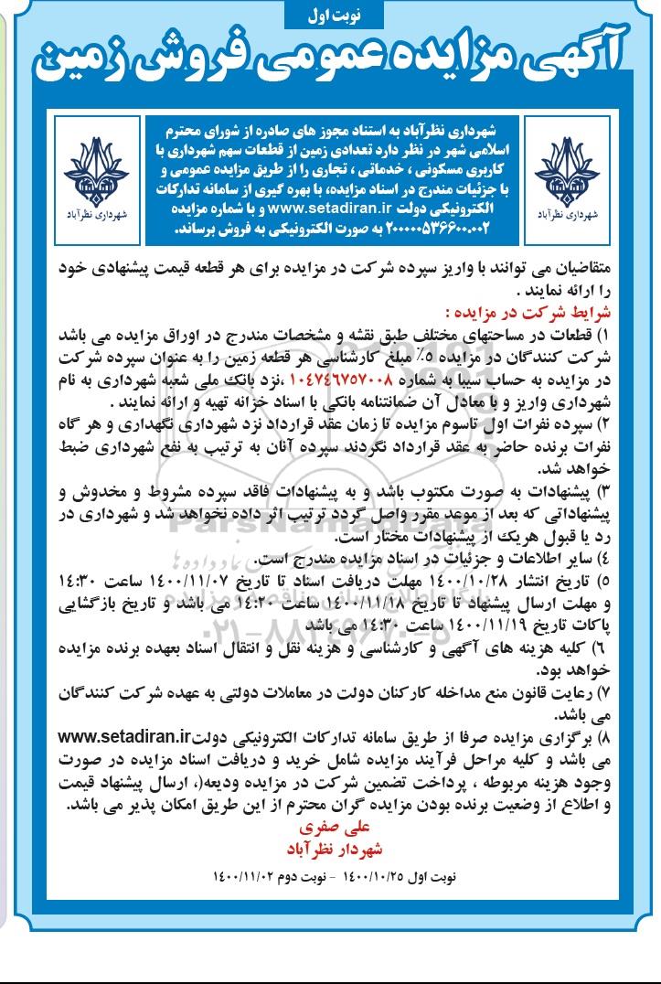 مزایده،مزایده فروش زمین با کاربری مسکونی ، خدماتی نوبت اول