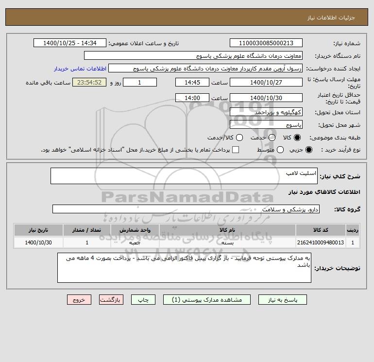 نام دستگاه خریدار:معاونت درمان دانشگاه علوم پزشکی یاسوج