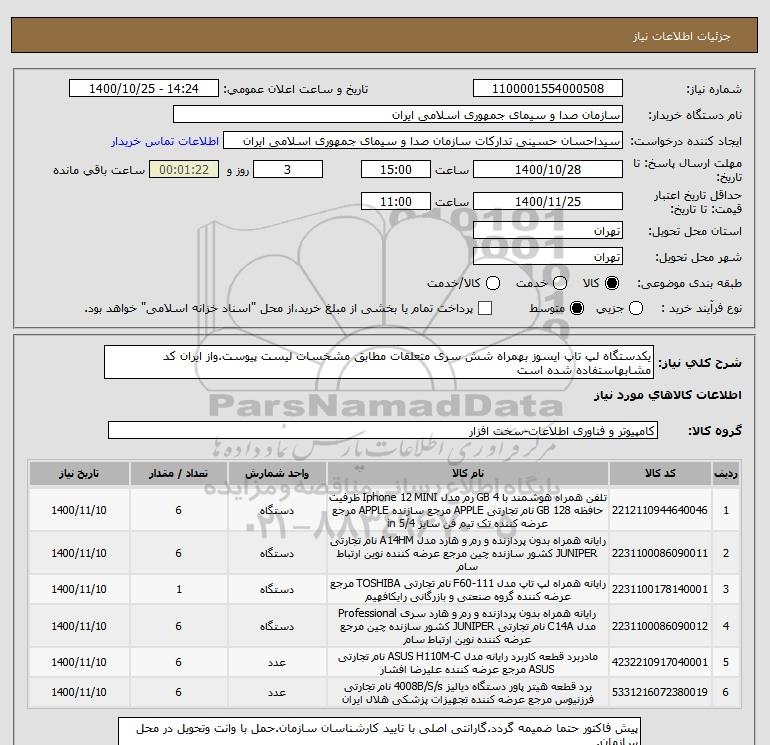 نام دستگاه خریدار:سازمان صدا و سیمای جمهوری اسلامی ایران