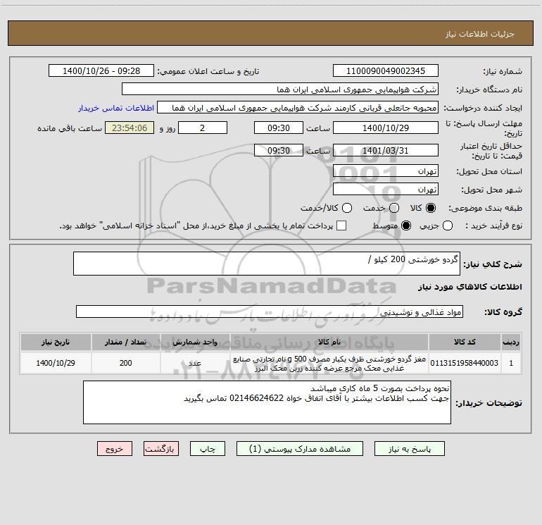 شرح کلی نیاز: گردو خورشتی 200 کیلو /