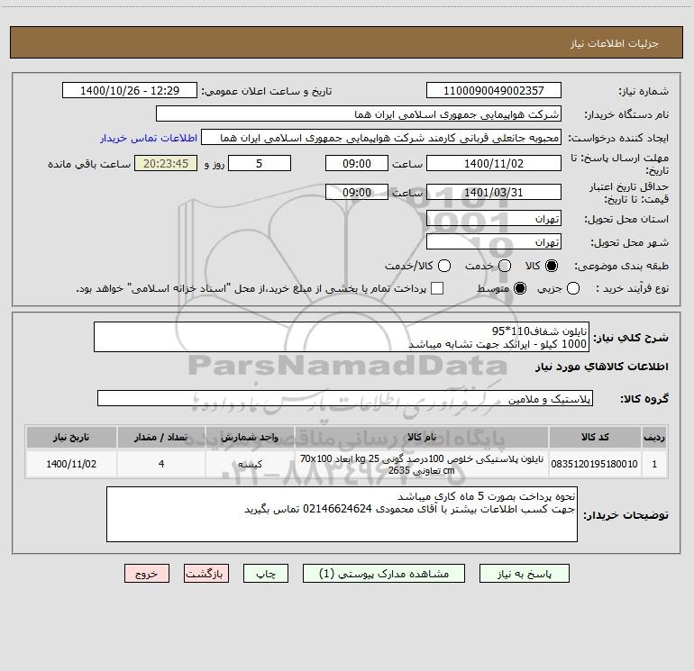 نام دستگاه خریدار:شرکت هواپیمایی جمهوری اسلامی ایران هما