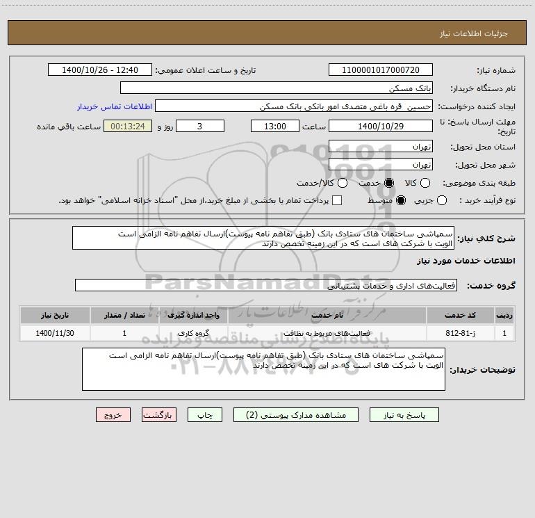 شرح کلی نیاز: سمپاشی ساختمان های ستادی بانک (طبق تفاهم نامه پیوست)ارسال تفاهم نامه الزامی است