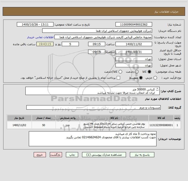 نام دستگاه خریدار:شرکت هواپیمایی جمهوری اسلامی ایران هما
