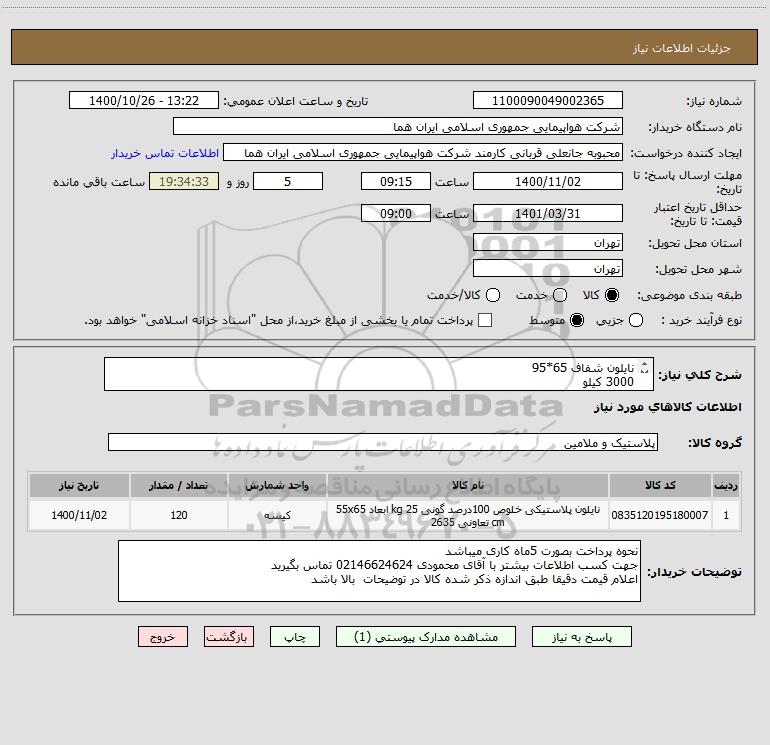 نام دستگاه خریدار:شرکت هواپیمایی جمهوری اسلامی ایران هما