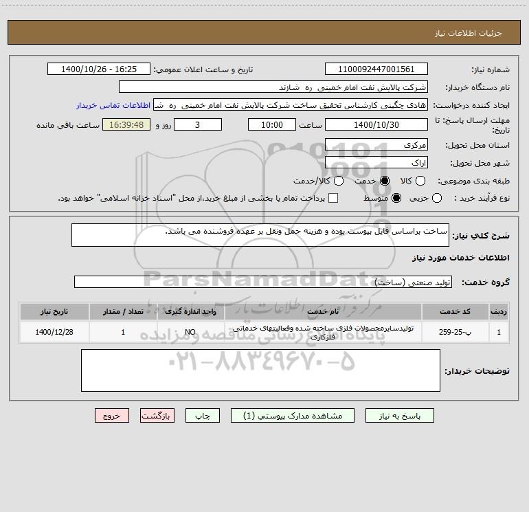 استعلام ساخت براساس فایل پیوست بوده و هزینه حمل ونقل بر عهده فروشنده می باشد., استعلام ساخت براساس فایل پیوست بوده و هزینه حمل ونقل بر عهده فروشنده می باشد.