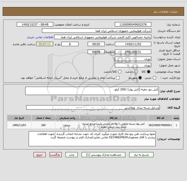 شرح کلی نیاز: کش دور جعبه (کش پول) /200 کیلو