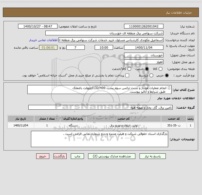 نام دستگاه خریدار:شرکت سهامی برق منطقه ای خوزستان
