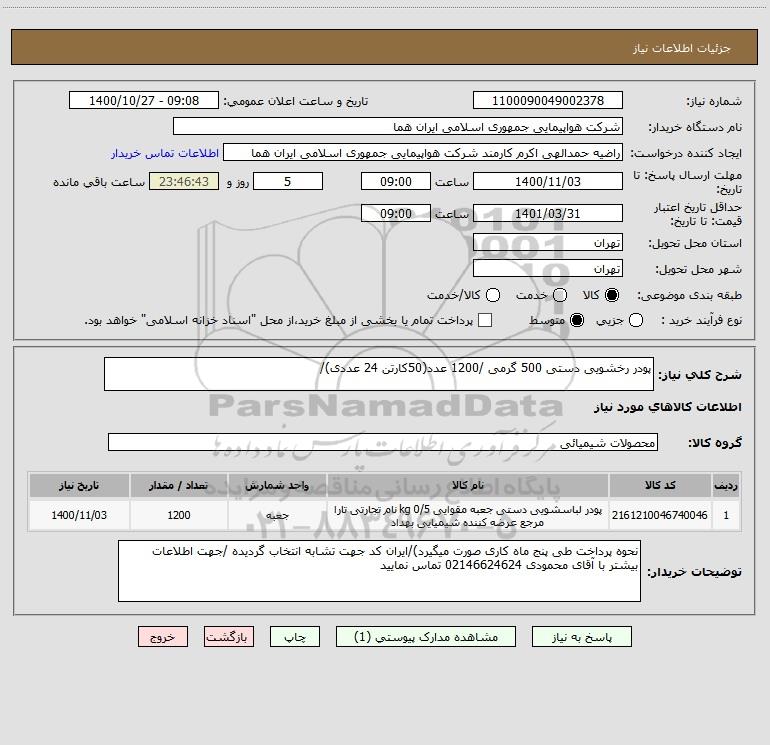 استعلام پودر رخشویی دستی 500 گرمی /1200 عدد(50کارتن 24 عددی)/, استعلام پودر رخشویی دستی 500 گرمی /1200 عدد(50کارتن 24 عددی)/