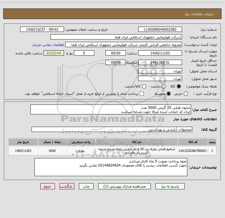 نام دستگاه خریدار:شرکت هواپیمایی جمهوری اسلامی ایران هما
