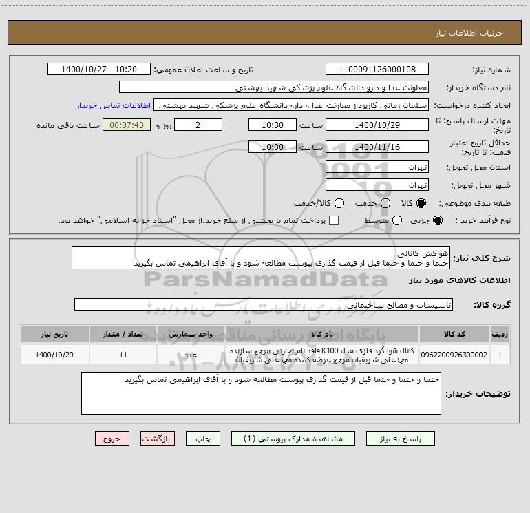نام دستگاه خریدار:معاونت غذا و دارو دانشگاه علوم پزشکی شهید بهشتی