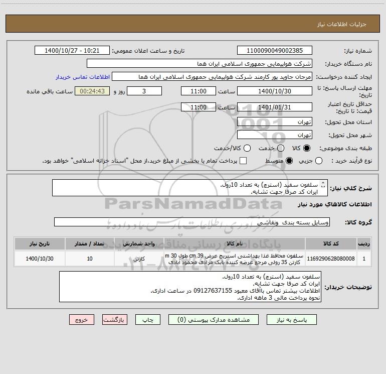 نام دستگاه خریدار:شرکت هواپیمایی جمهوری اسلامی ایران هما