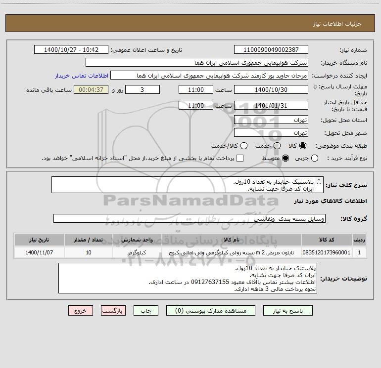 نام دستگاه خریدار:شرکت هواپیمایی جمهوری اسلامی ایران هما