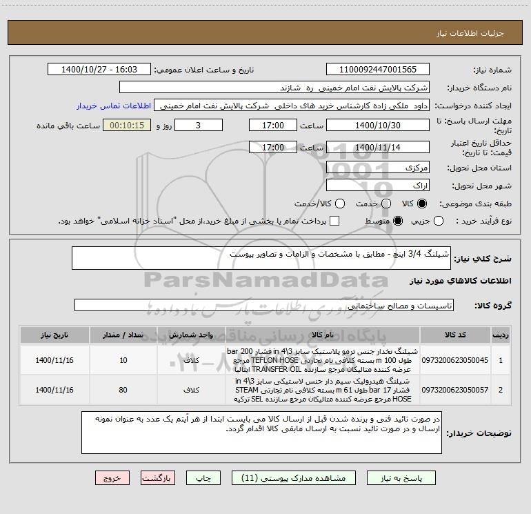 شرح کلی نیاز: شیلنگ 3/4 اینچ - مطابق با مشخصات و الزامات و تصاویر پیوست