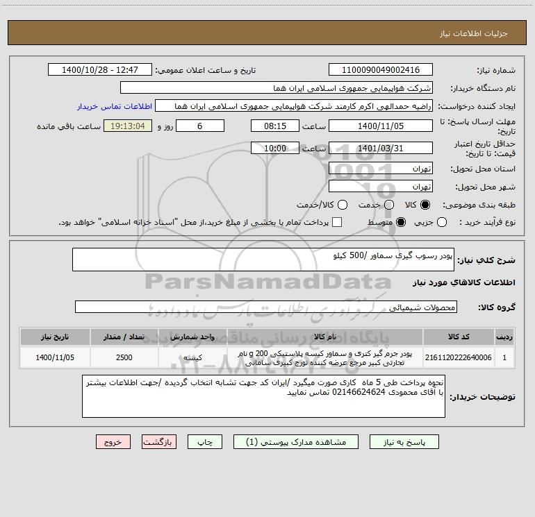 شرح کلی نیاز: پودر رسوب گیری سماور /500 کیلو