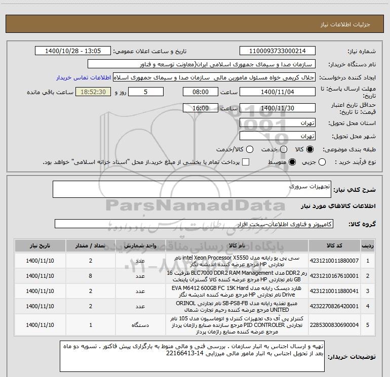شرح کلی نیاز: تجهیزات سروری