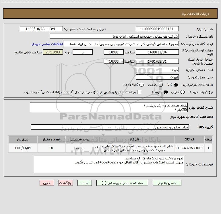 شرح کلی نیاز: بادام هندی درجه یک درشت /