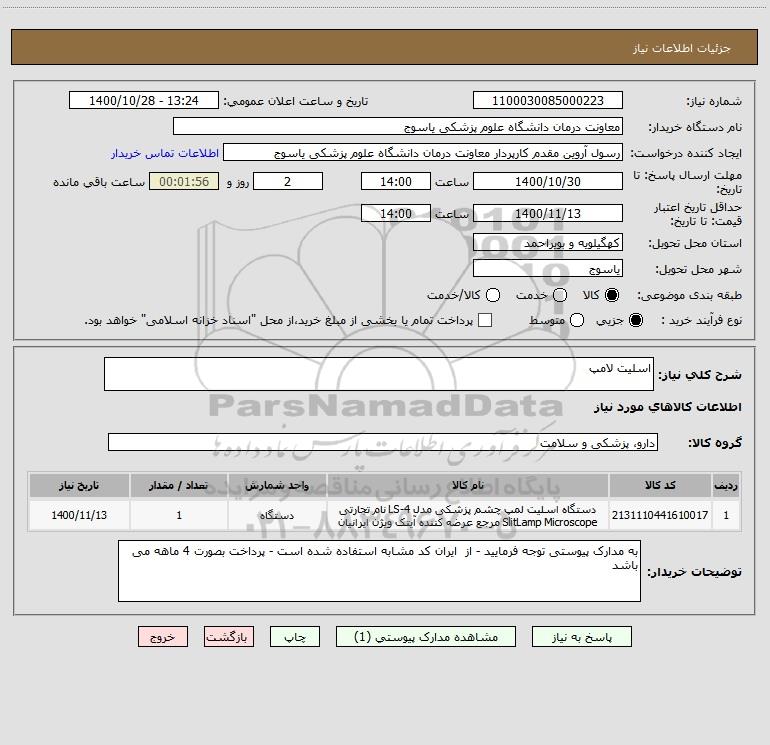 نام دستگاه خریدار:معاونت درمان دانشگاه علوم پزشکی یاسوج