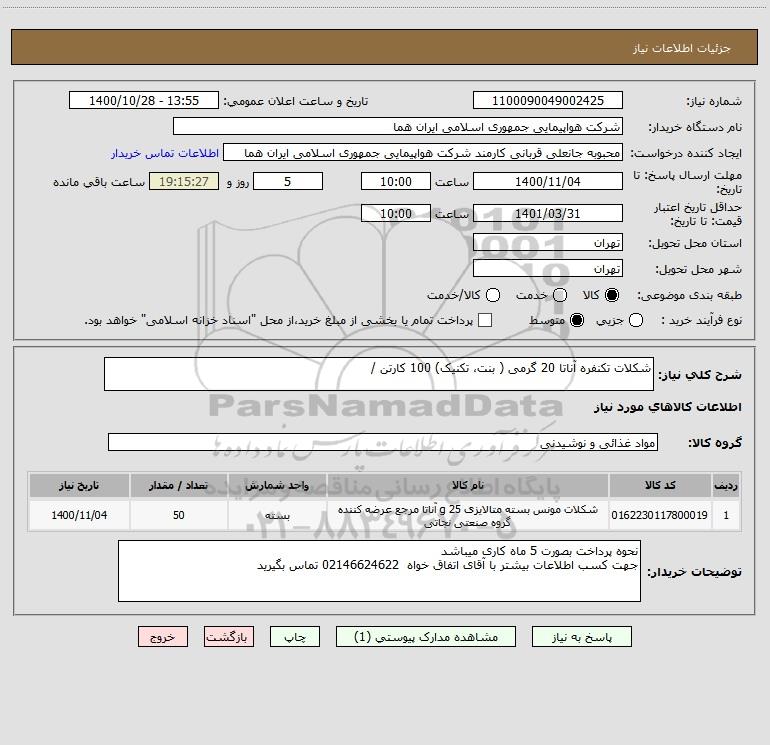 نام دستگاه خریدار:شرکت هواپیمایی جمهوری اسلامی ایران هما