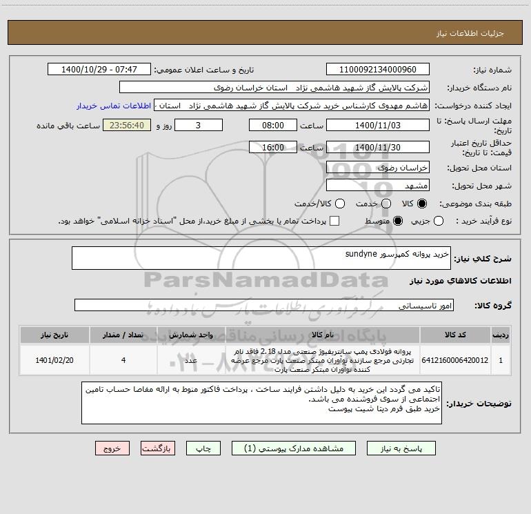 نام دستگاه خریدار:شرکت پالایش گاز شهید هاشمی نژاد استان خراسان رضوی