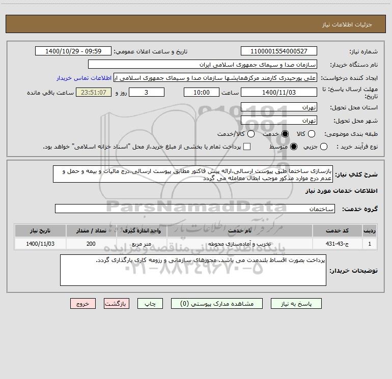 نام دستگاه خریدار:سازمان صدا و سیمای جمهوری اسلامی ایران