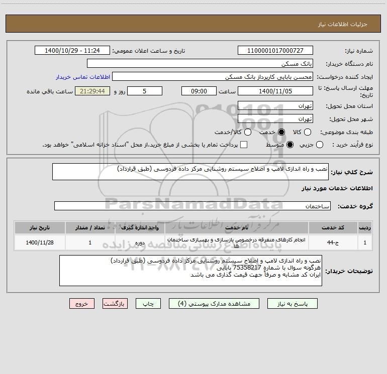 شرح کلی نیاز: نصب و راه اندازی لامپ و اصلاح سیستم روشنایی مرکز داده فردوسی (طبق قرارداد)