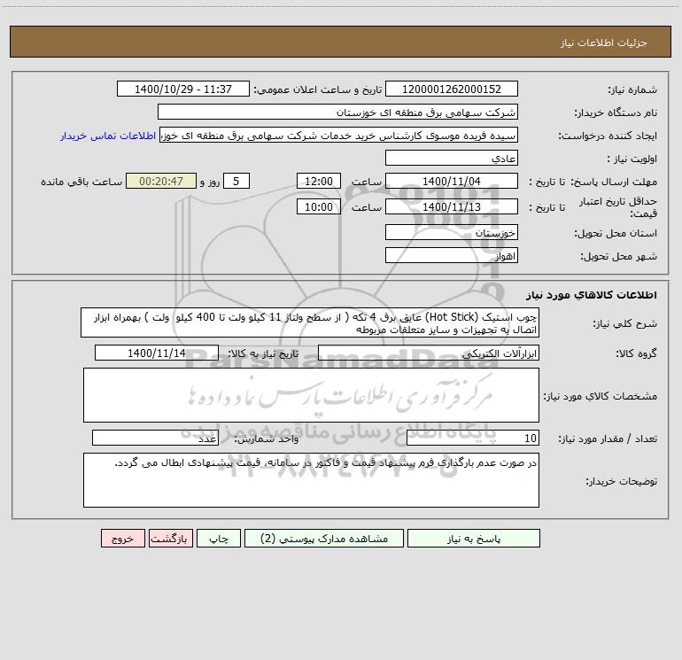 نام دستگاه خریدار:شرکت سهامی برق منطقه ای خوزستان