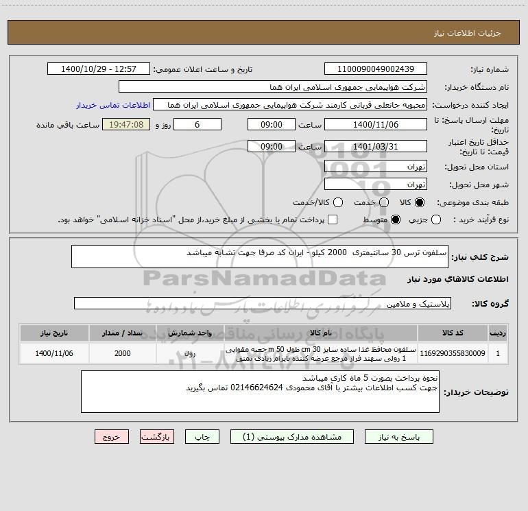 نام دستگاه خریدار:شرکت هواپیمایی جمهوری اسلامی ایران هما