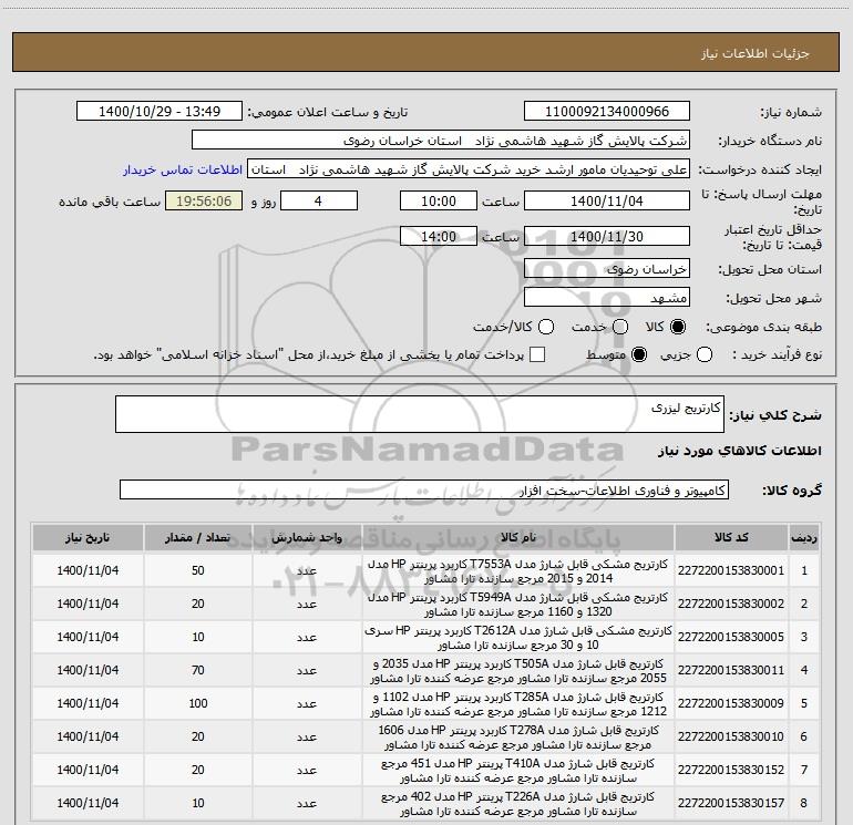نام دستگاه خریدار:شرکت پالایش گاز شهید هاشمی نژاد استان خراسان رضوی