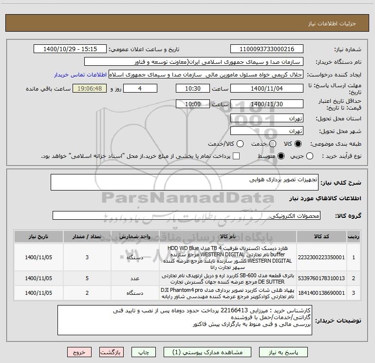 شرح کلی نیاز: تجهیزات تصویر برداری هوایی