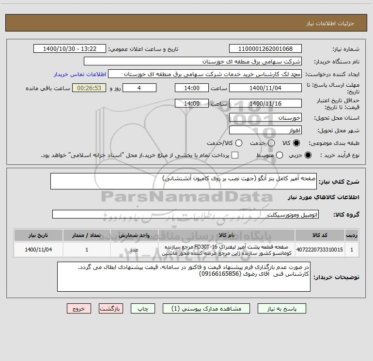 شرح کلی نیاز: صفحه آمپر کامل بنز آتگو (جهت نصب بر روی کامیون آتشنشانی)