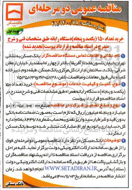 مناقصه خرید و تعداد 150 ( یکصد و پنجاه ) دستگاه رایانه, مناقصه، مناقصه خرید و تعداد 150 ( یکصد و پنجاه ) دستگاه رایانه
