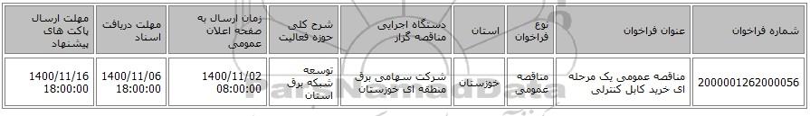 مناقصه، مناقصه عمومی یک مرحله ای خرید کابل کنترلی, مناقصه عمومی یک مرحله ای خرید کابل کنترلی