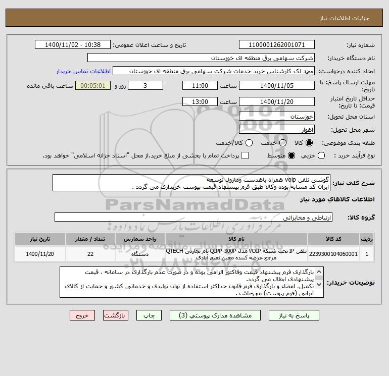 نام دستگاه خریدار:شرکت سهامی برق منطقه ای خوزستان