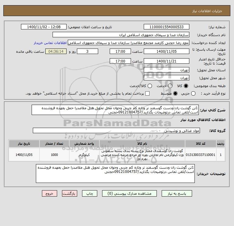 نام دستگاه خریدار:سازمان صدا و سیمای جمهوری اسلامی ایران