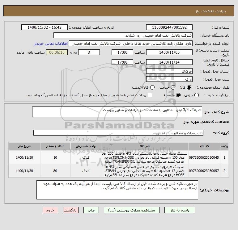 شرح کلی نیاز: شیلنگ 3/4 اینچ - مطابق با مشخصات و الزامات و تصاویر پیوست