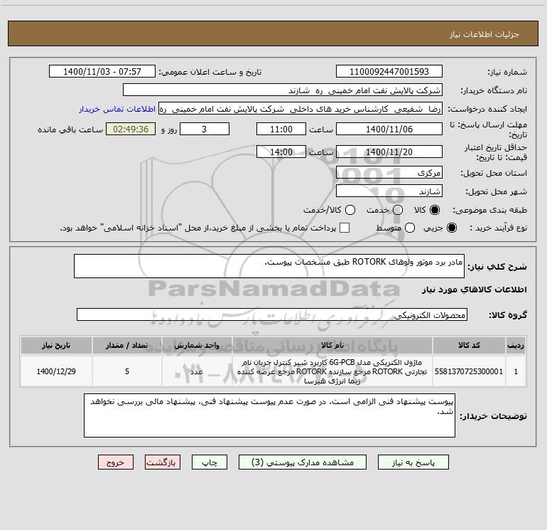 شرح کلی نیاز: مادر برد موتور ولوهای ROTORK طبق مشخصات پیوست.