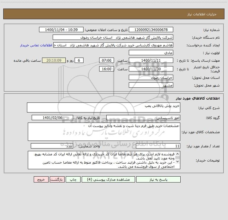 نام دستگاه خریدار:شرکت پالایش گاز شهید هاشمی نژاد استان خراسان رضوی