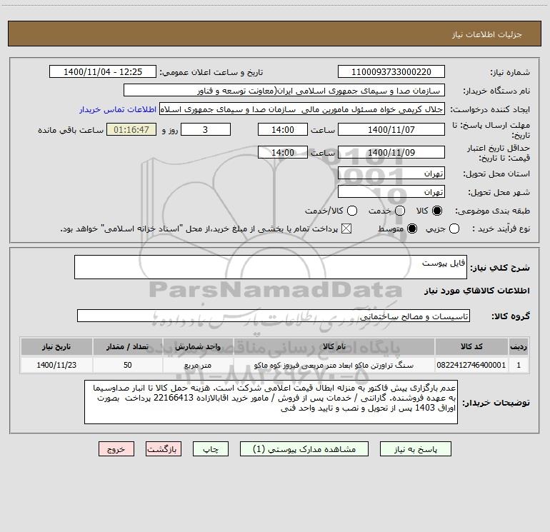 نام دستگاه خریدار: سازمان صدا و سیمای جمهوری اسلامی ایران(معاونت توسعه و فناور