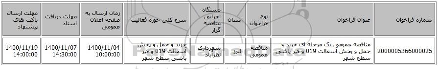 مناقصه، مناقصه عمومی یک مرحله ای خرید و حمل و پخش آسفالت 019 و قیر پاشی سطح شهر, مناقصه عمومی یک مرحله ای خرید و حمل و پخش آسفالت 019 و قیر پاشی سطح شهر