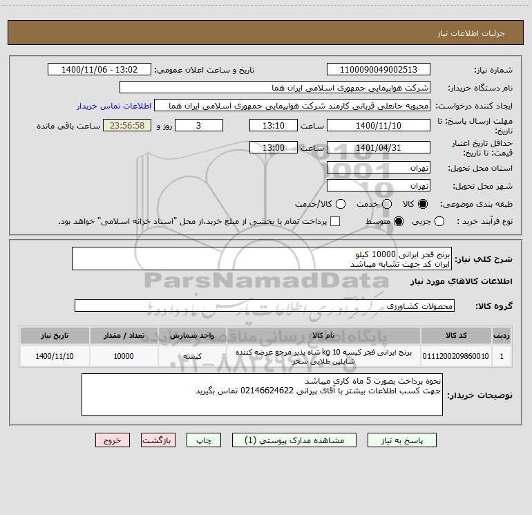 نام دستگاه خریدار:شرکت هواپیمایی جمهوری اسلامی ایران هما