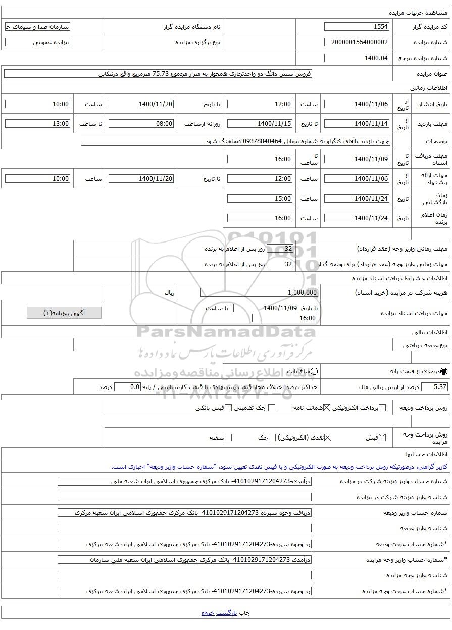 | شماره حساب عودت وجه مزایده |